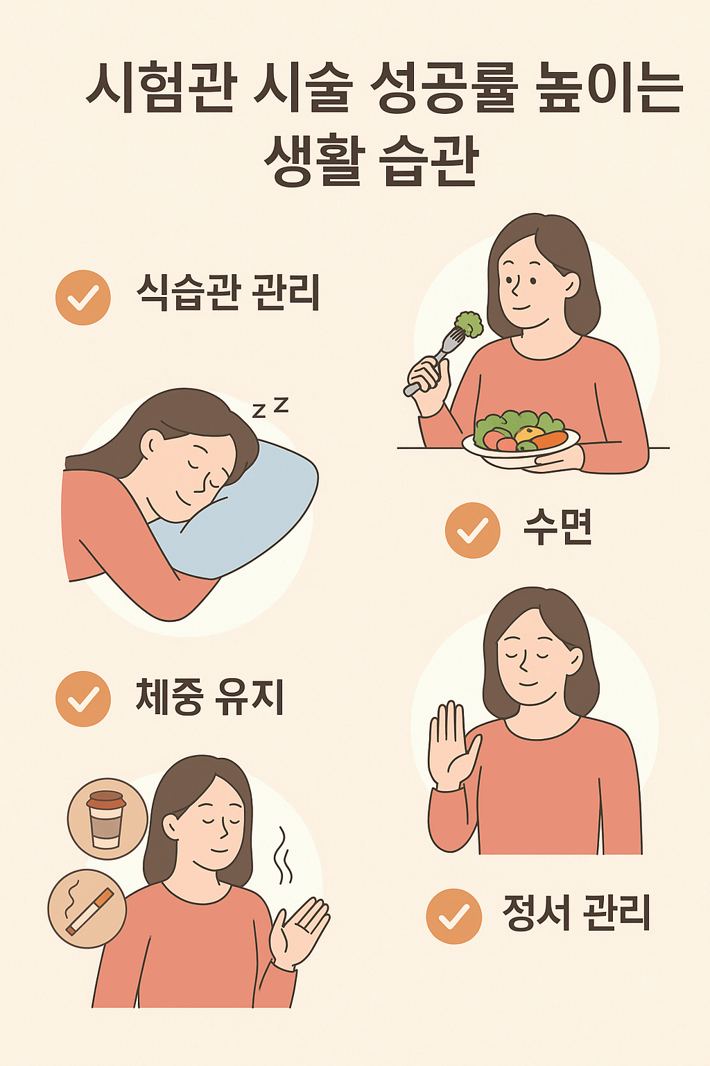시험관 시술은 단순한 의학 시술이 아니라, 삶의 전반적인 준비와 태도가 성공률에 영향을 주는 복합적인 과정입니다. 단지 병원에 맡기고 결과를 기다리는 것이 아니라, 시술을 받는 본인의 생활 습관과 건강 상태, 정서적 안정감 모두가 중요합니다.